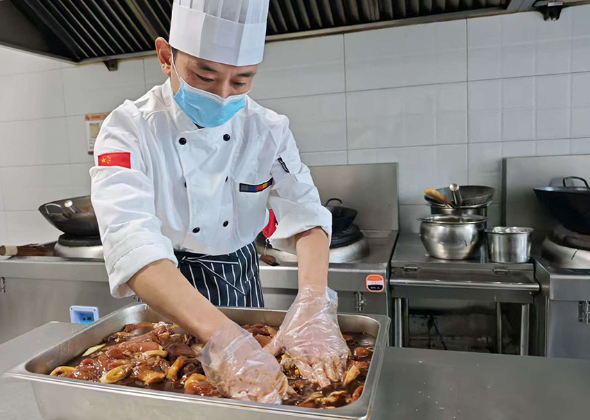 福瑞瀾德的廚師正在專注處理新鮮原材料,精準(zhǔn)配比調(diào)料、均勻裹覆揉搓,以耐心鎖鮮入味,只為做好每份美食,點(diǎn)亮食客舌尖。